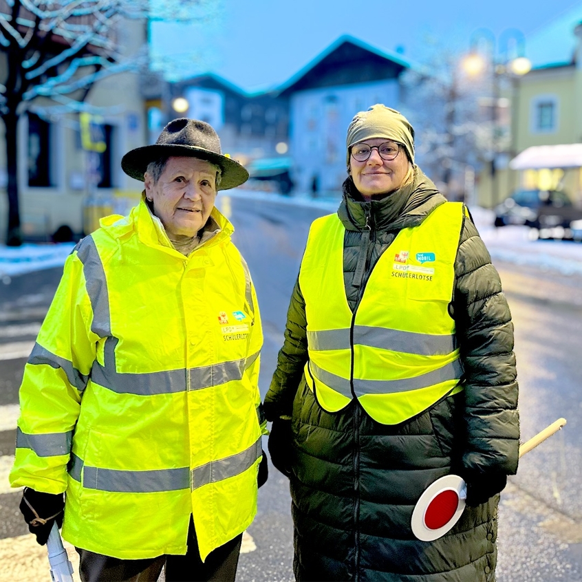 Gudrun (li.) und Claudia (re.) machen den Schulweg für die Kinder in Zirl sicherer.